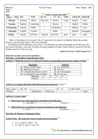 Full Term Test 1 Level 2nd Year Secondary Esl Worksheet By Telmoudi S