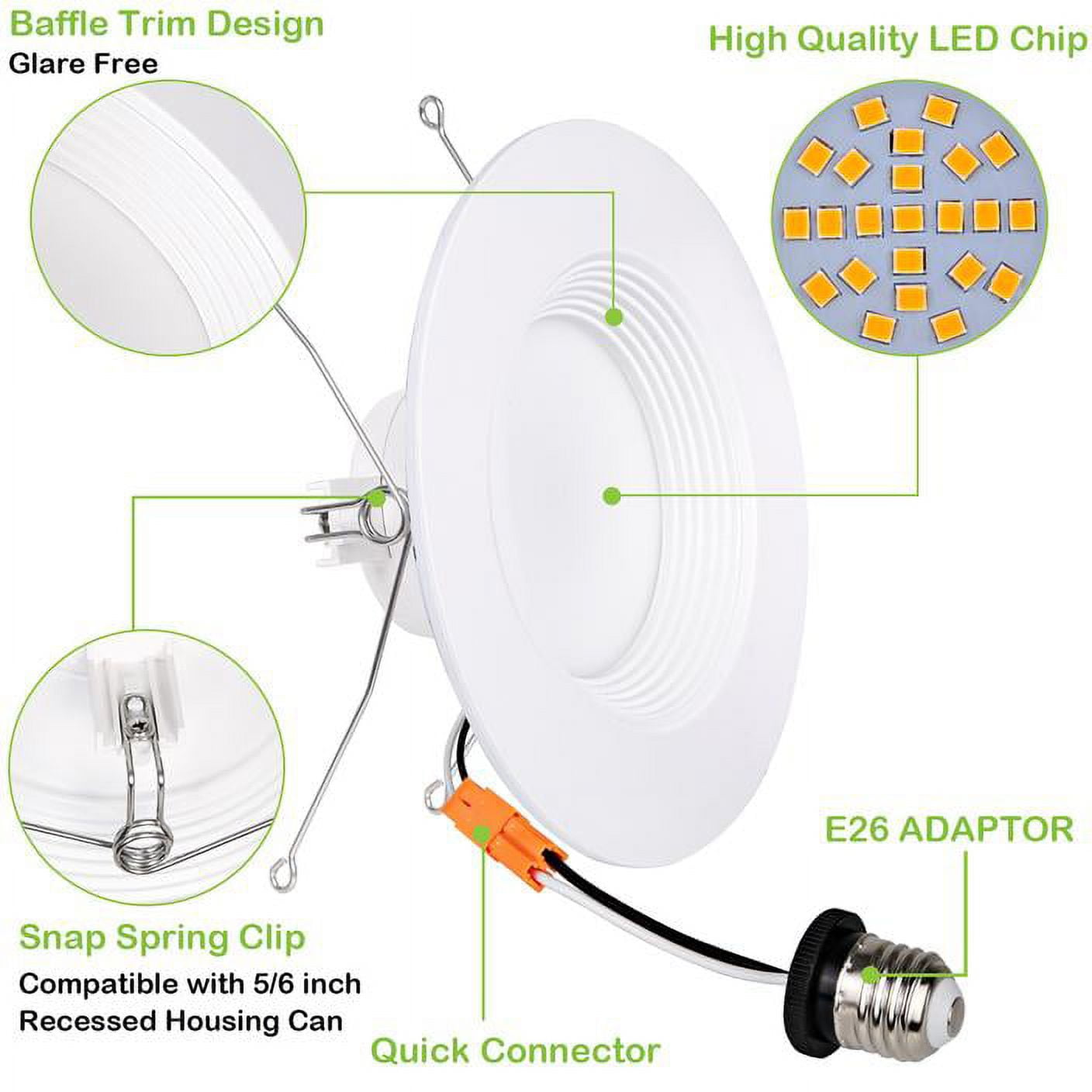 12 Pack 5 6 Inch Led Recessed Lighting Baffle Trim Cri90 15w 100w 1100lm 5000k Daylight White Dimmable Recessed Lighting Damp Rated Led Recessed Downlight Etl Listed Walmart Com
